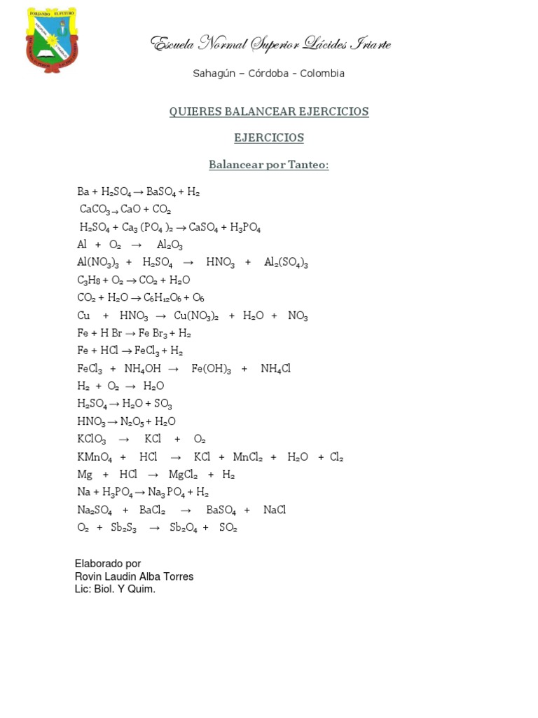 Balanceo De Ecuaciones Quimicas Por Tanteo Pdf