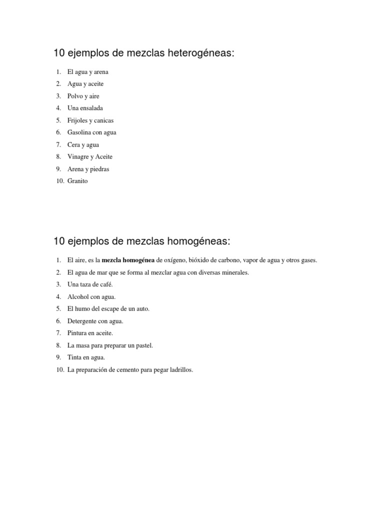 10 Ejemplos De Mezclas Heterogeneas Pdf Mezcla Oxigeno