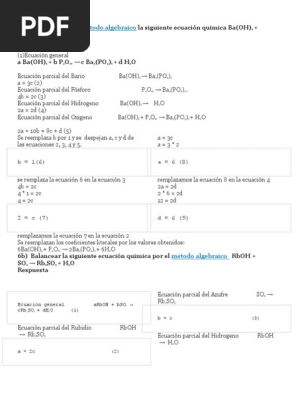 Metodo algebraico quimica ejercicios resueltos. 6c Balancear por el método algebraico la siguiente ecuación quimica BaOH 2 P 4 O 10. Ejercicio resuelto Paso 1.