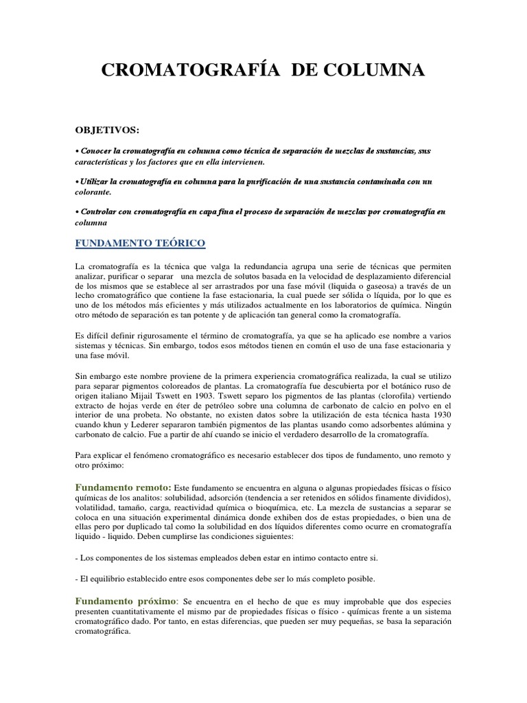 Cromatografia De Columna Pdf Cromatografia Cromatografia De Gases