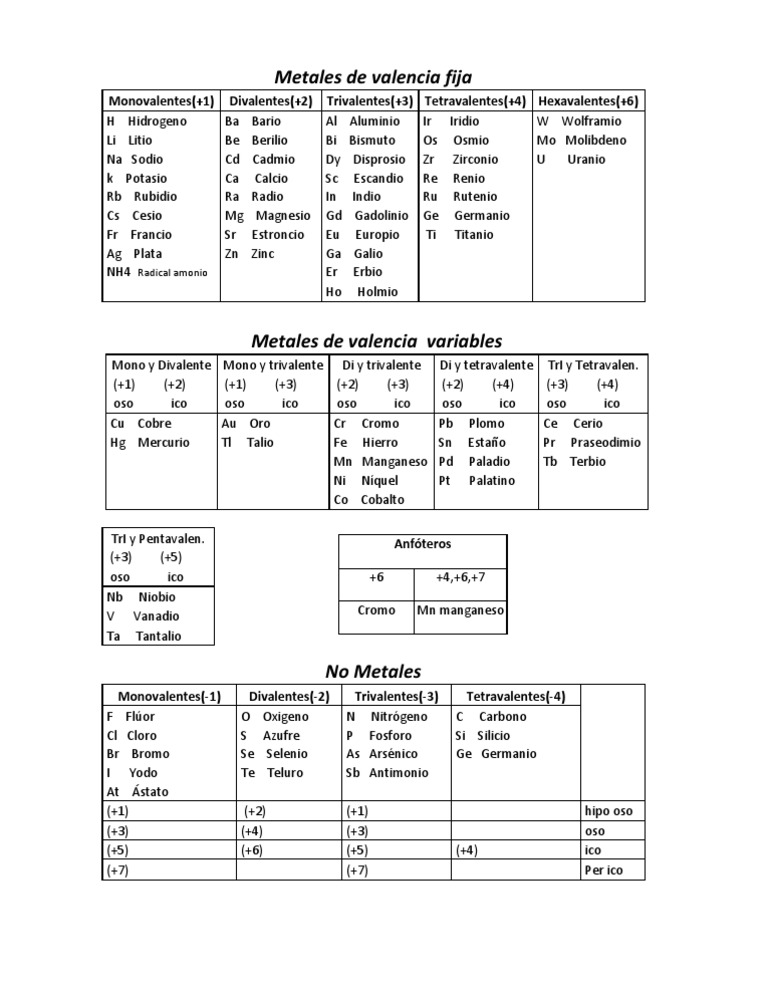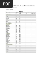 Tabla De Valencias De Los Diferebtes Elementos Quimicos Docsity