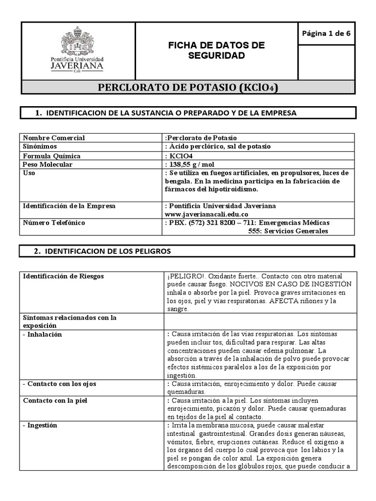 Pdf Pagina 1 De 6 Clorato De Potasio Kclo3 Pablo Del Angel Academia Edu