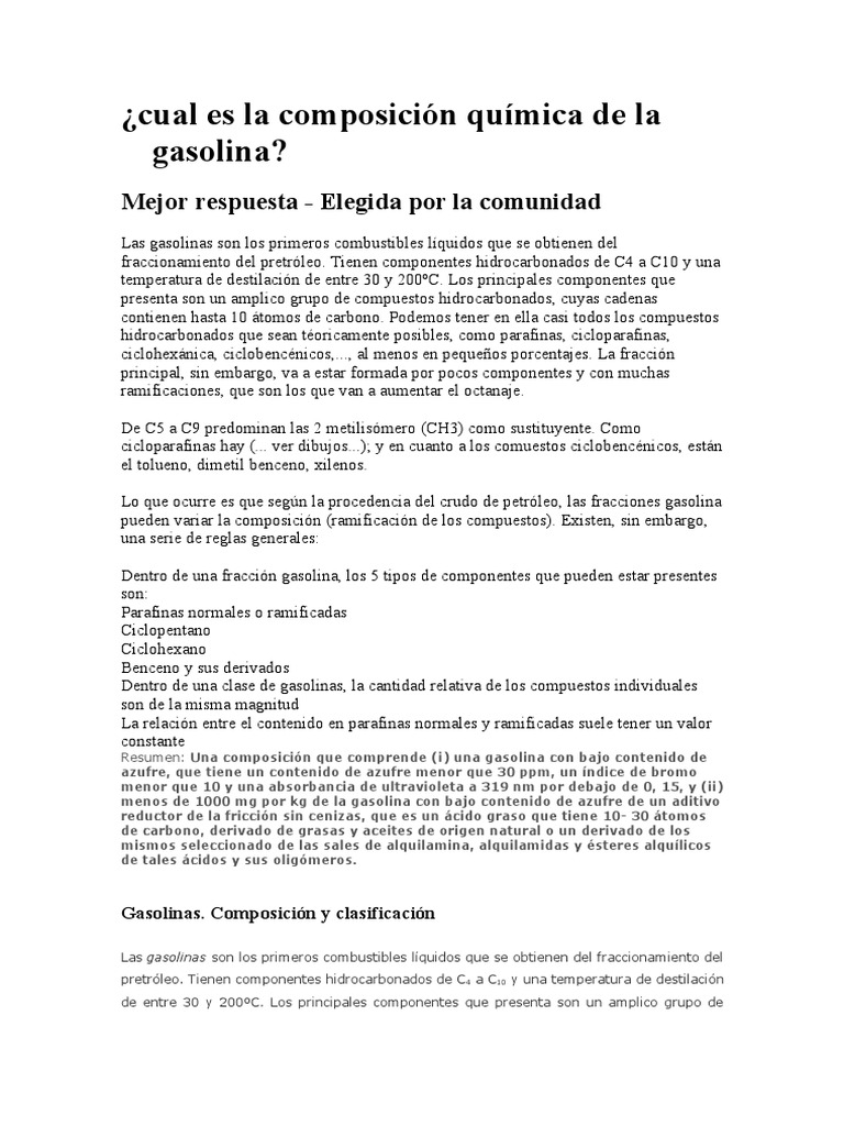 Componentes Quimicos Del Combustible